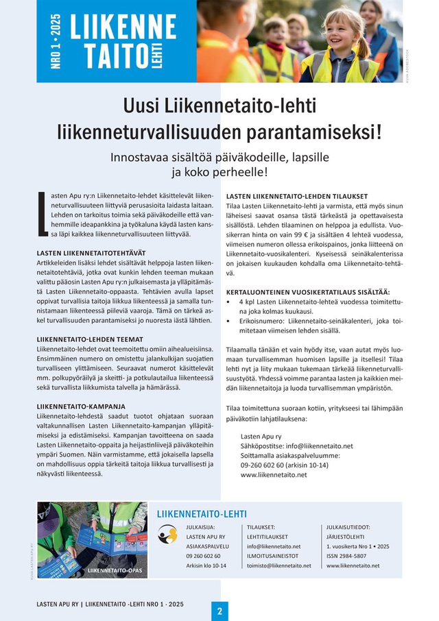 Lehti sisältää kiinnostavia artikkeleja turvallisesta ja aiheeseen liittyviä tehtäviä lapsille.